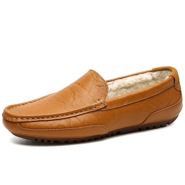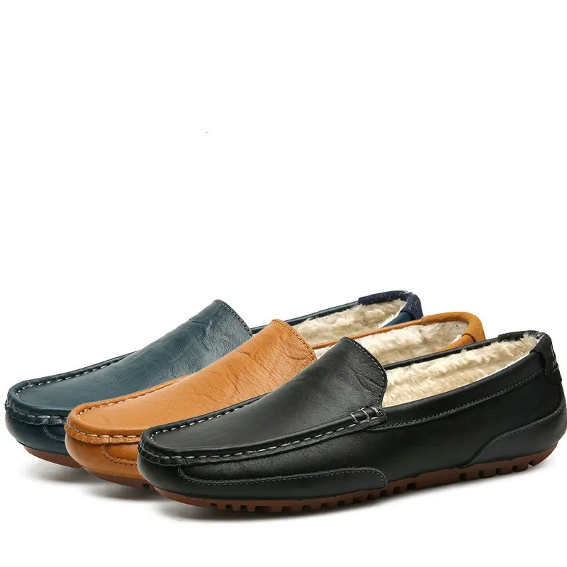 Italian Mens Shoes Casual Luxury Brand Winter Warm Men Loafers Genuine Leather Moccasins Breathable